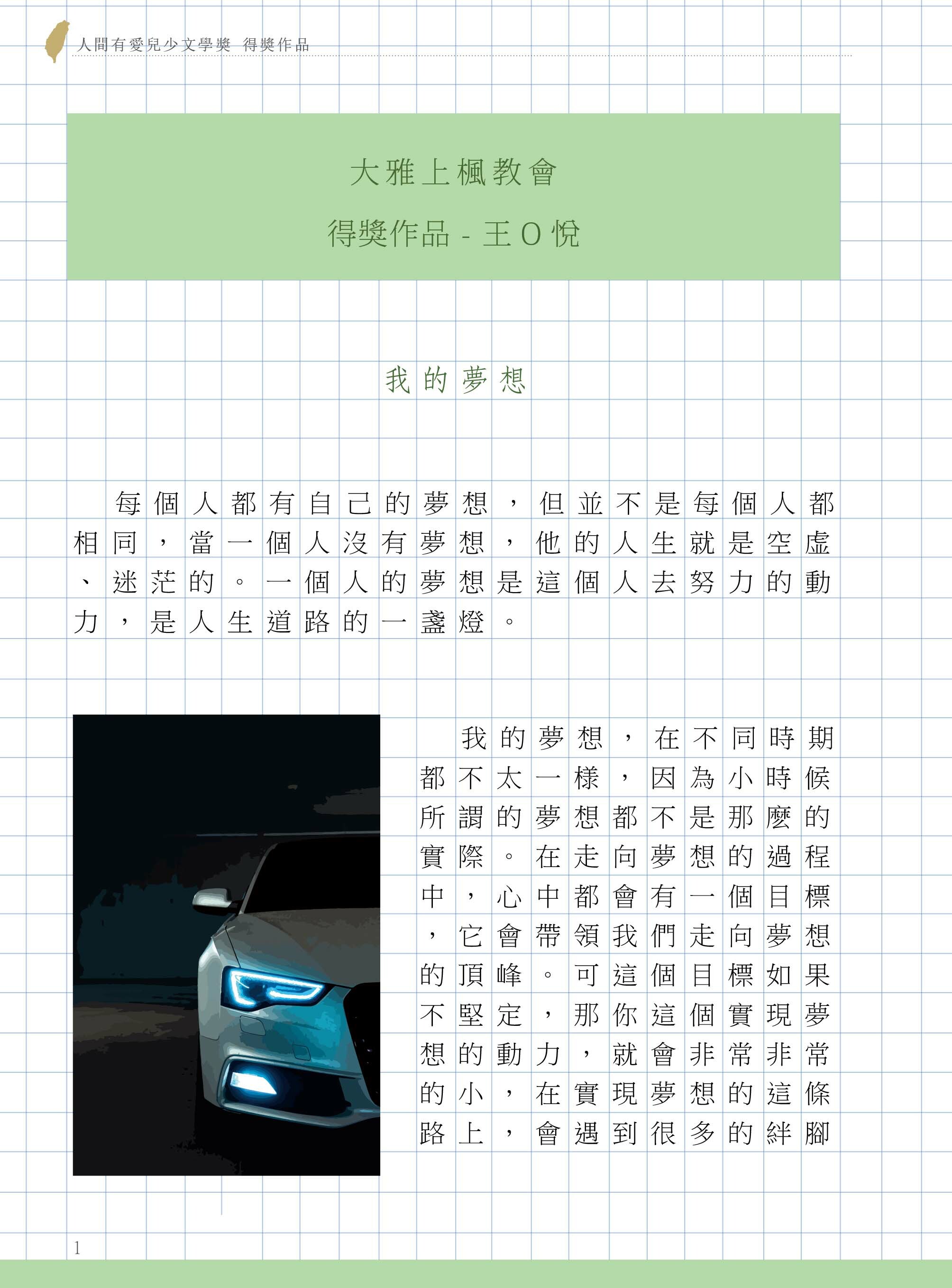 兒少文學獎以「我的夢想」為創作主題,對象為特殊境遇的孩子,透過創作分享自己心中的夢想,同時,讓他們的夢想被看見、被實現~經評審委員嚴謹的初、複、決審後選出優異作品,看見孩子上台領獎的榮耀感,是他們人生中的第一次被肯定!