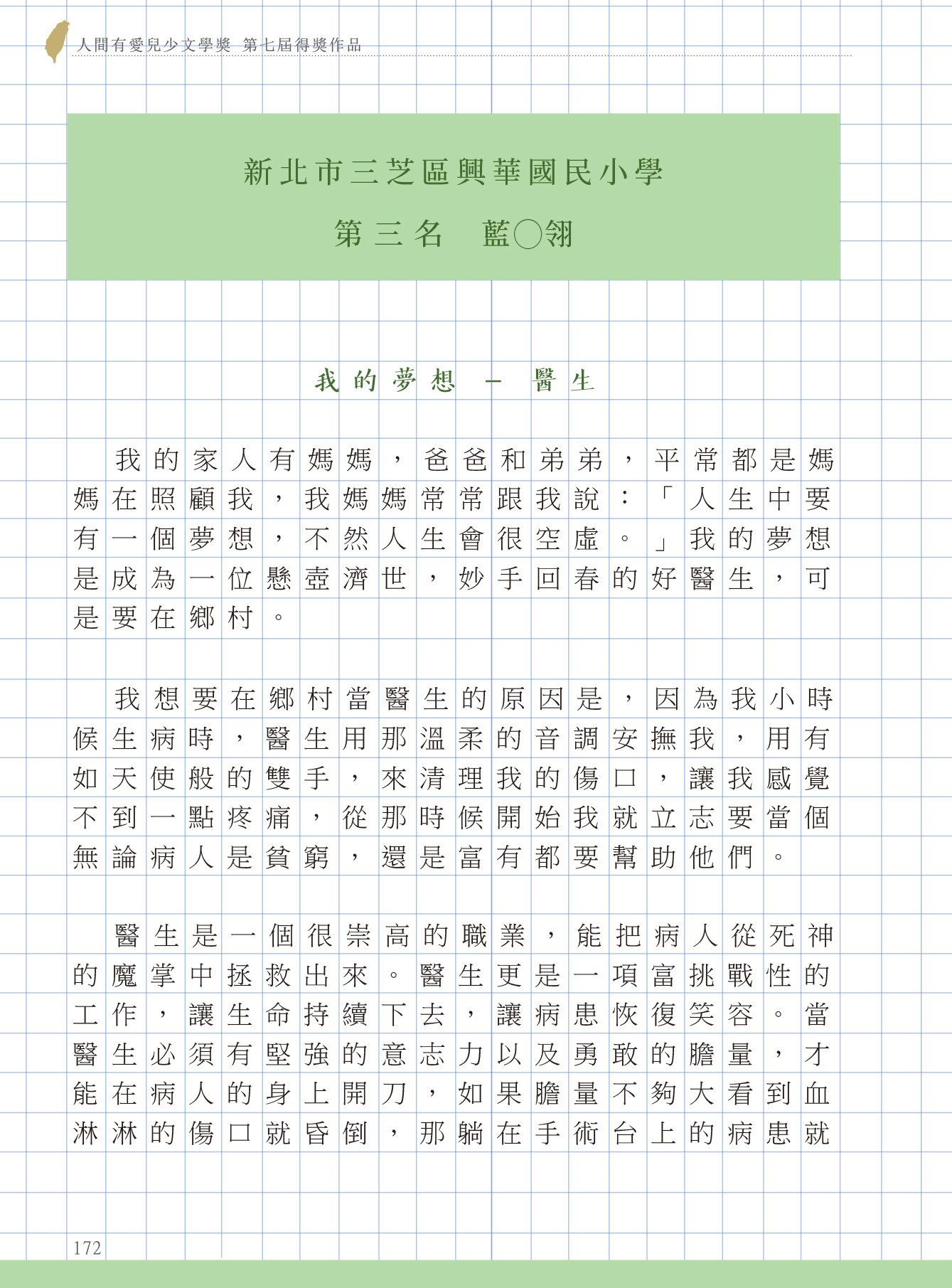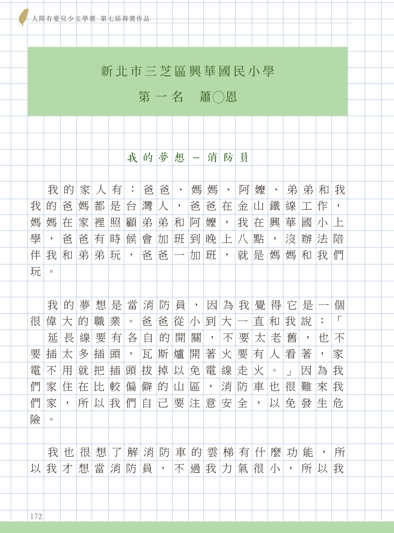 兒少文學獎以「我的夢想」為創作主題,對象為特殊境遇的孩子,透過創作分享自己心中的夢想,同時,讓他們的夢想被看見、被實現~經評審委員嚴謹的初、複、決審後選出優異作品,看見孩子上台領獎的榮耀感,是他們人生中的第一次被肯定!