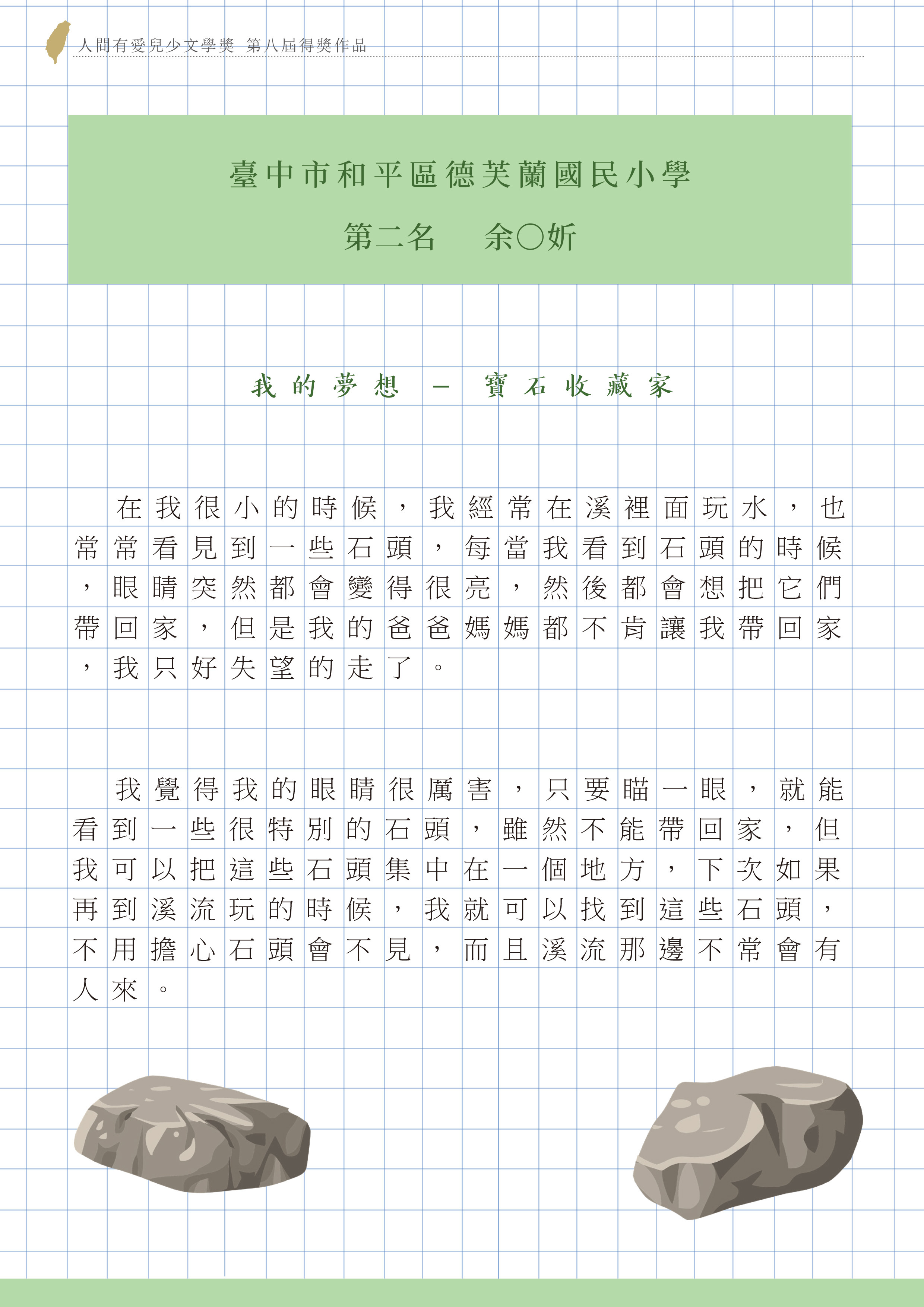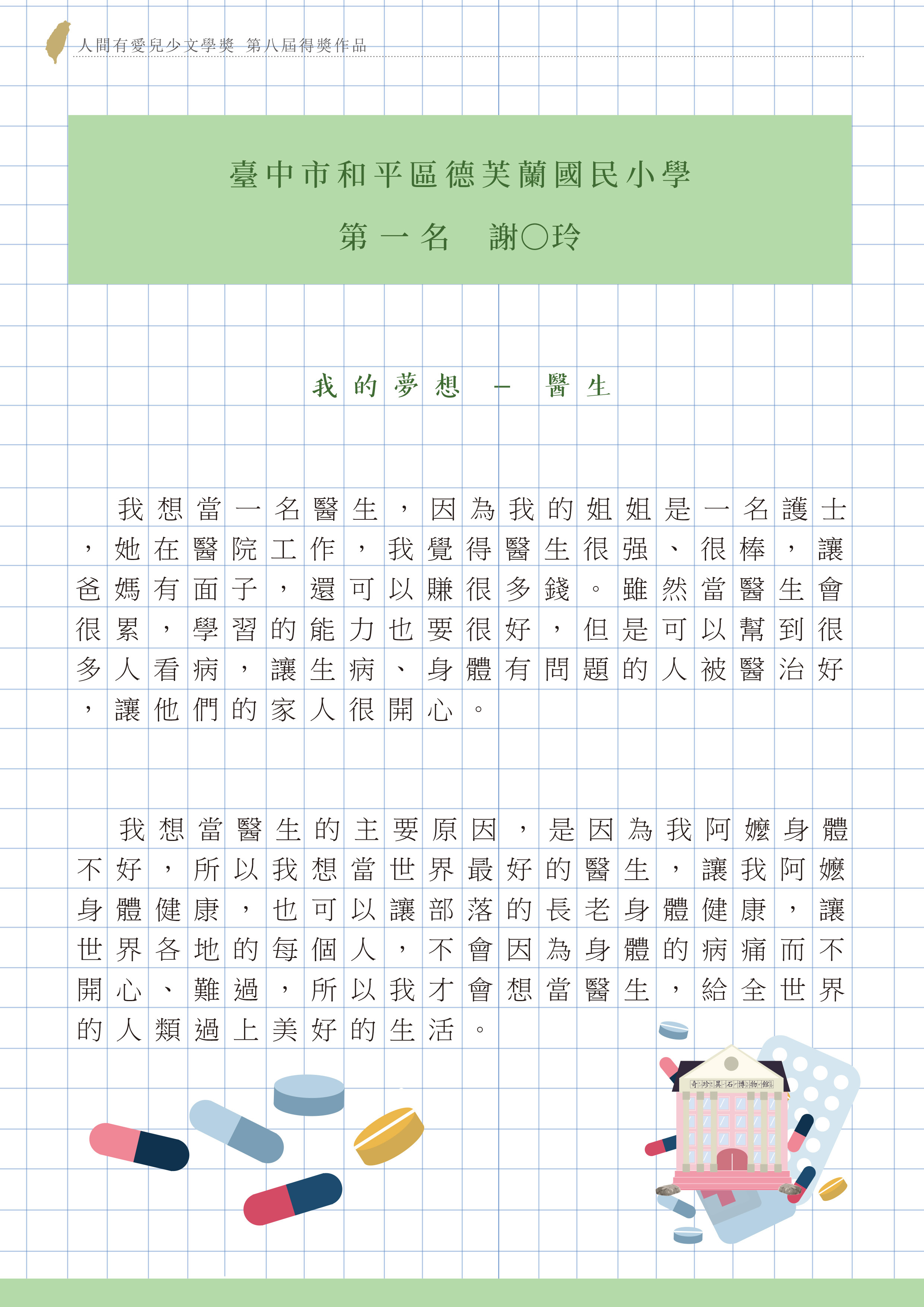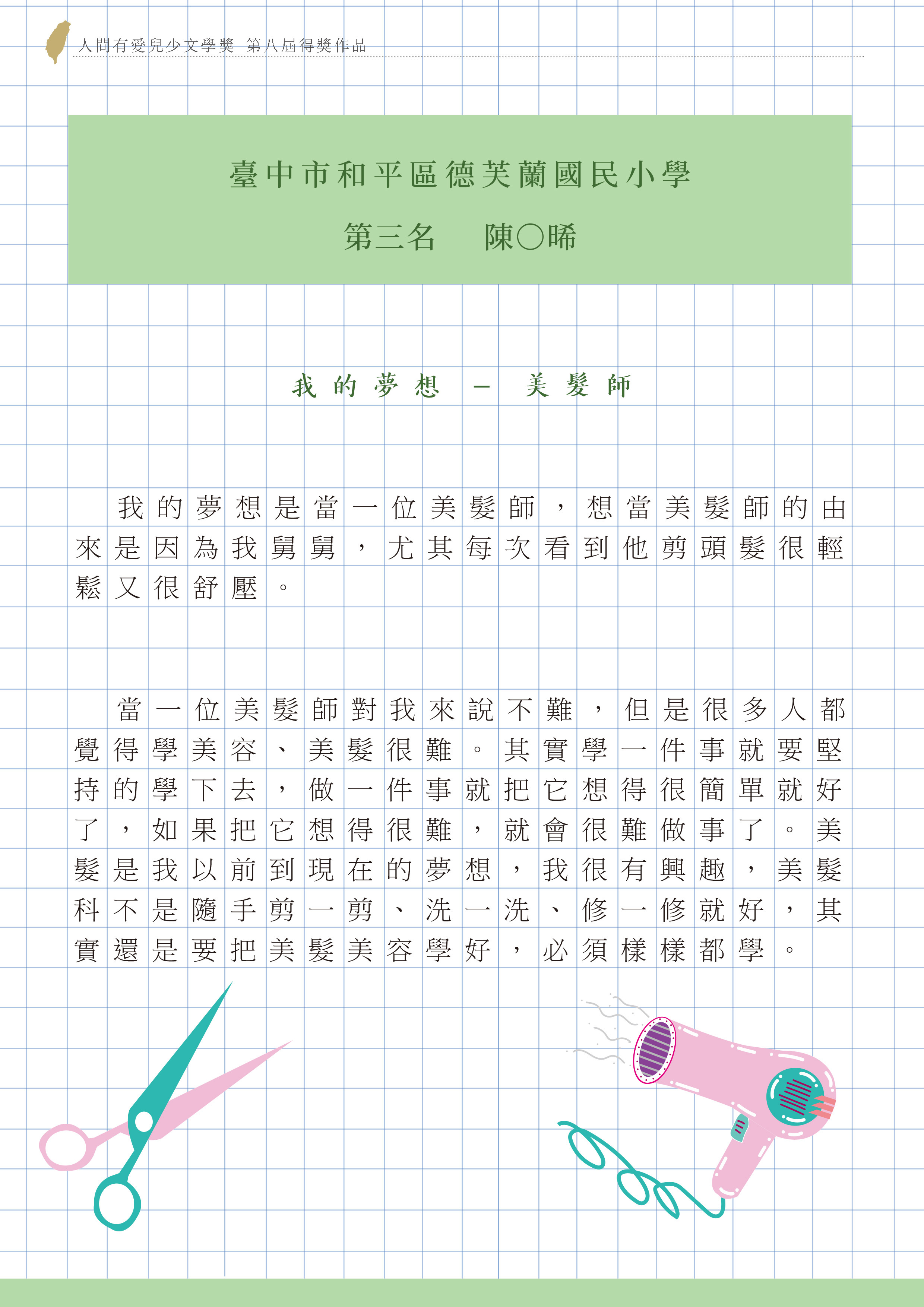 兒少文學獎以「我的夢想」為創作主題,對象為特殊境遇的孩子,透過創作分享自己心中的夢想,同時,讓他們的夢想被看見、被實現~經評審委員嚴謹的初、複、決審後選出優異作品,看見孩子上台領獎的榮耀感,是他們人生中的第一次被肯定!