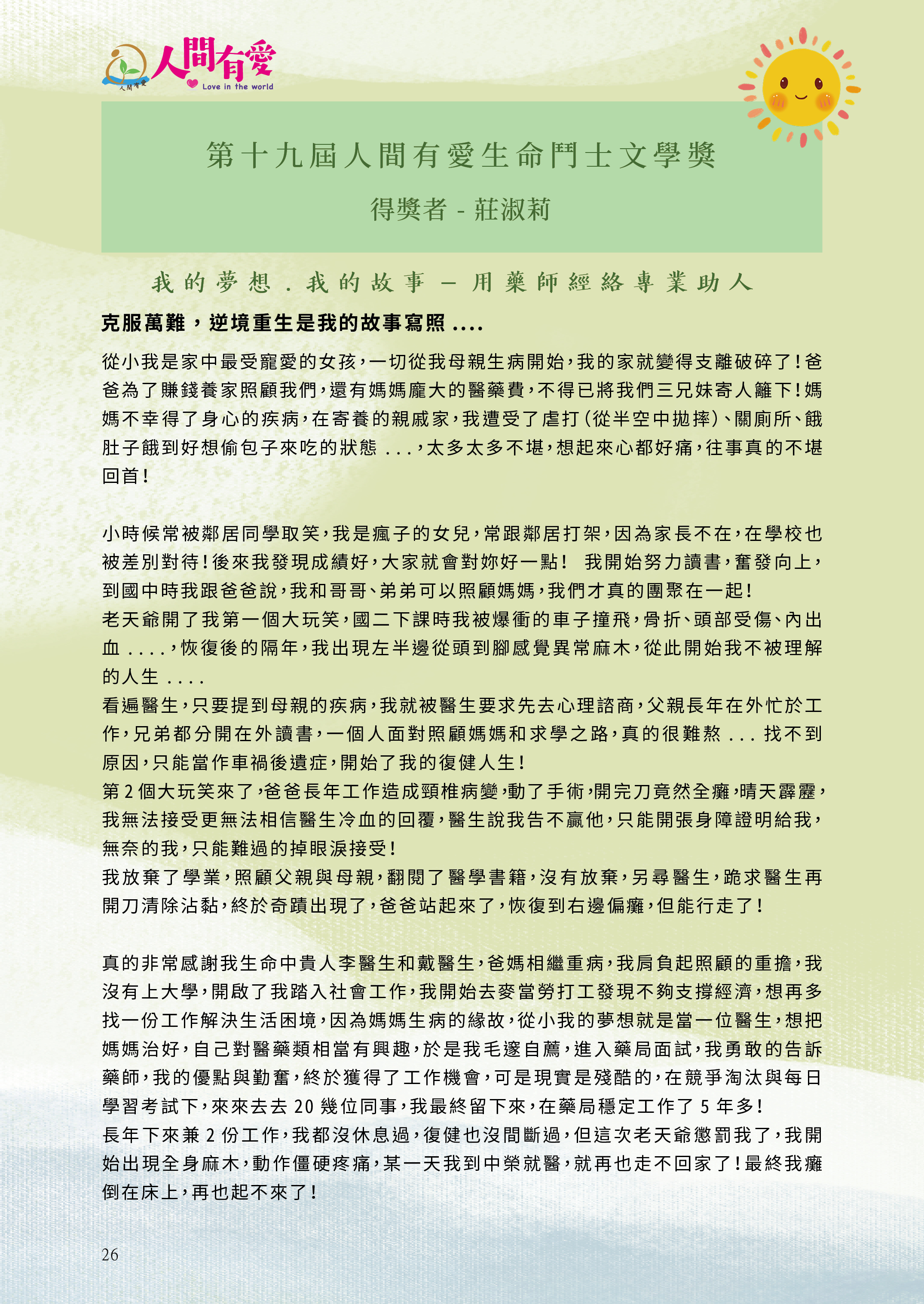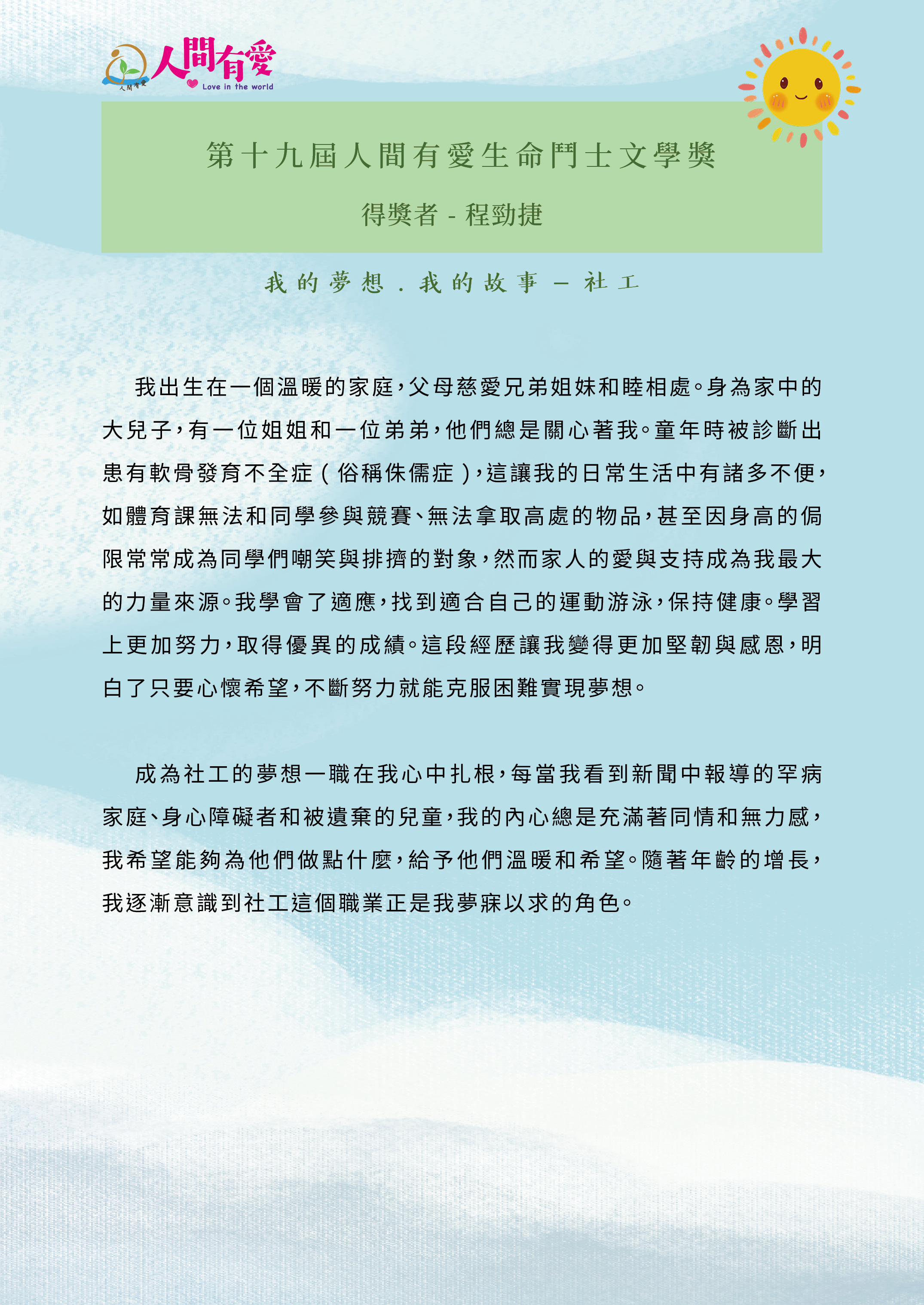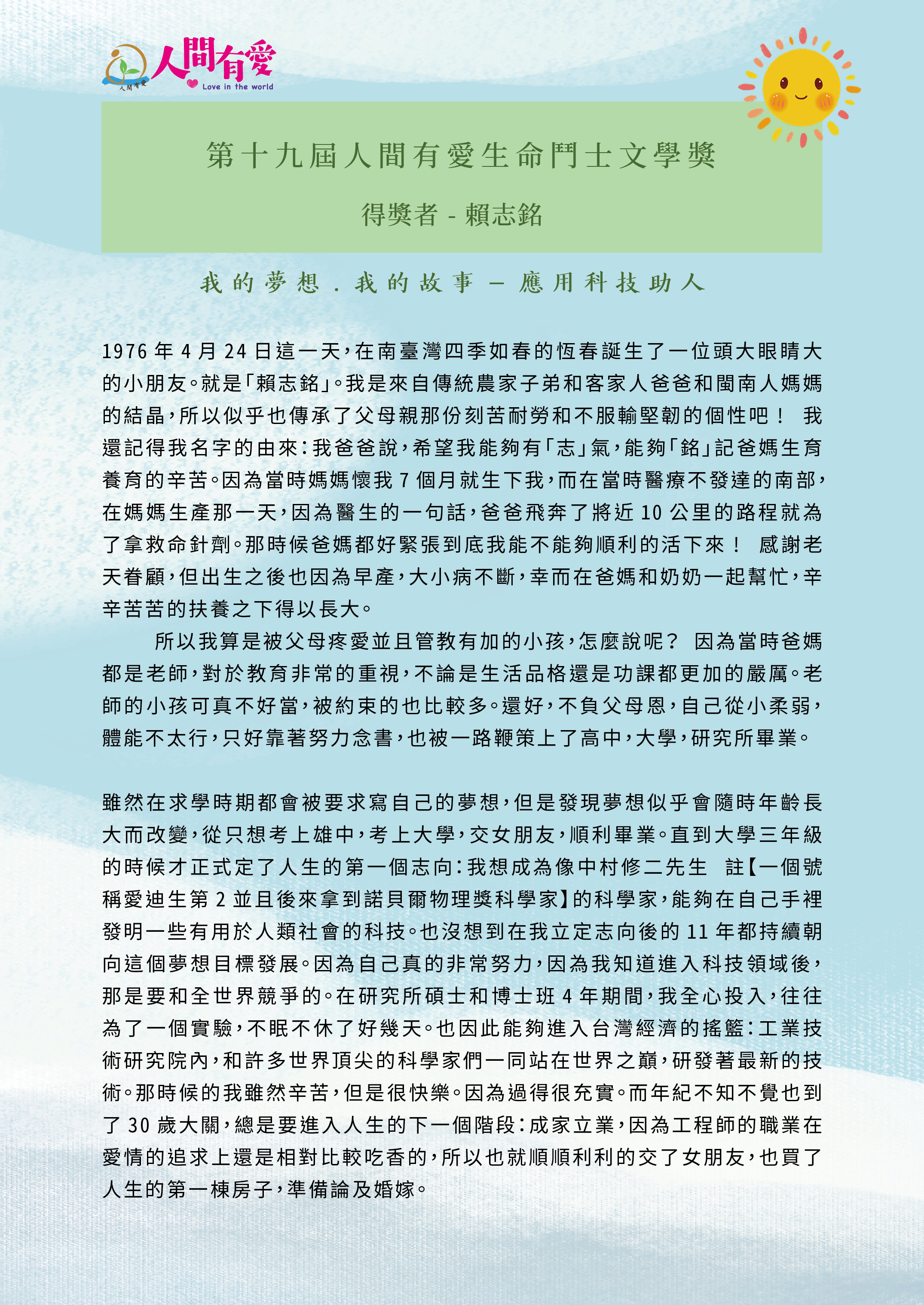 第19屆人間有愛生命鬥士文學獎