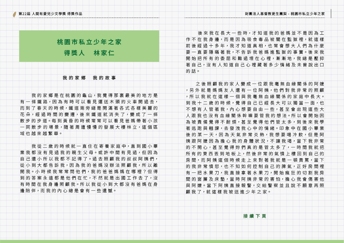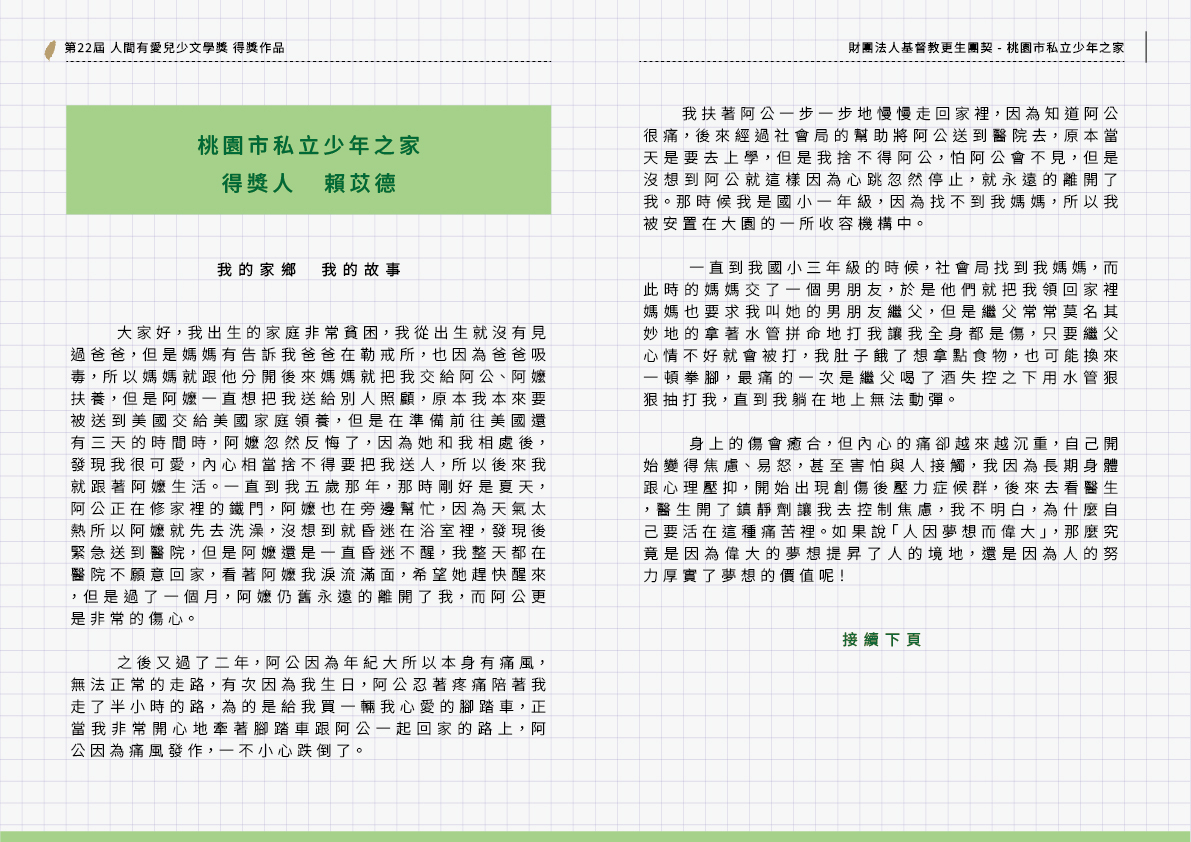 第二十二屆 人間有愛兒少文學獎