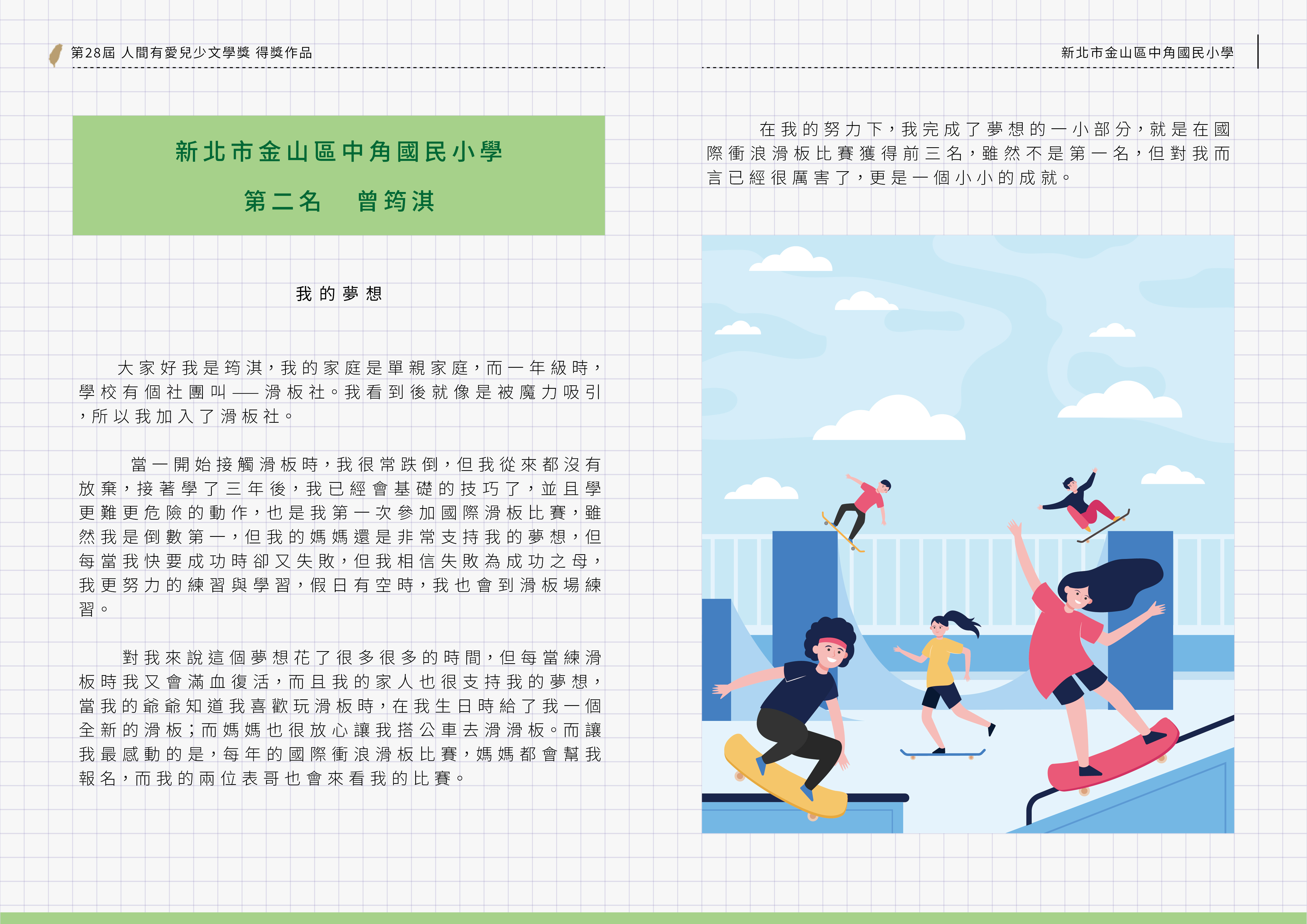 以「我的夢想」為創作主題,對象為偏鄉學校孩童,透過創作分享自己心中的夢想,同時,讓他們的夢想被看見、被實現~經評審委員嚴謹的初、複、決審後選出優異作品,看見孩子上台領獎的榮耀感,是他們人生中的第一次被肯定!