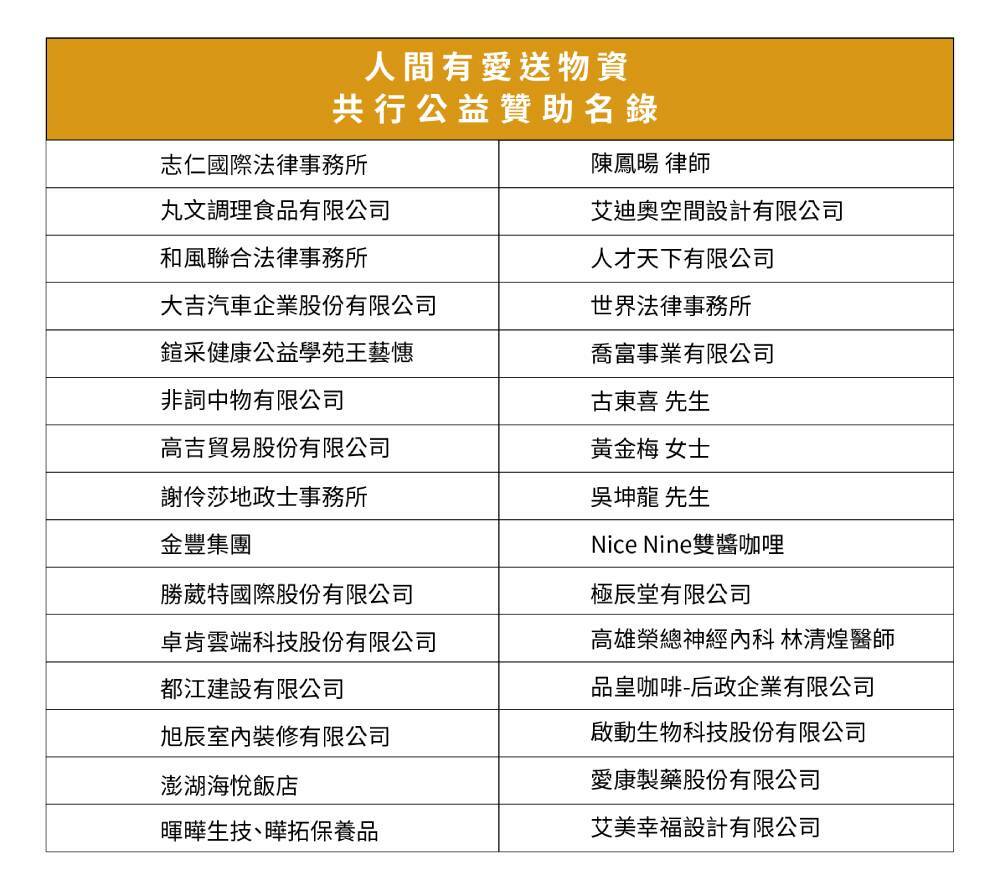 「人間有愛中小企業互助協會」長期與弱勢單位服務送物資,先後舉辦兒少文學獎、教導孩童寫作、關懷特殊境遇家庭,捐物資、捐蛋糕...等活動協助弱勢族群,自這波疫情開始爆發至今,因病毒肆虐,陸續收到機構的物資缺口需求,包括口罩、快篩、沐浴乳、洗髮精、洗手液、生活用品及食物..等,協會基於希望看到每個服務過的孩子與長者都在一個安全、關愛的環境中,並得到社會的全面支持的願景,因此再次發起贊助物資計畫,希望能為弱勢長者及孩子們的健康與生活備品募集。