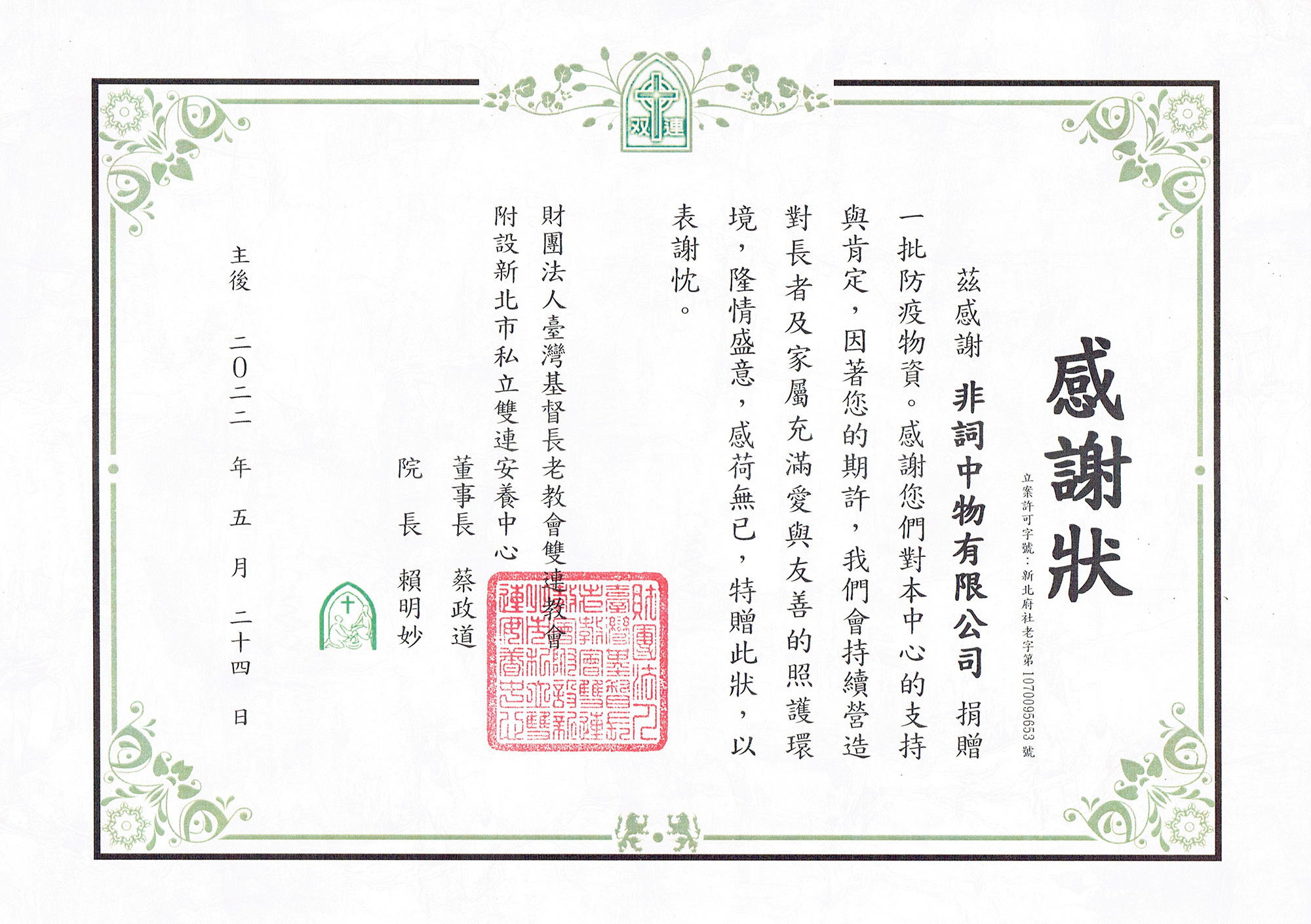 贊助:【人間有愛送物資】三芝雙連安養中心
