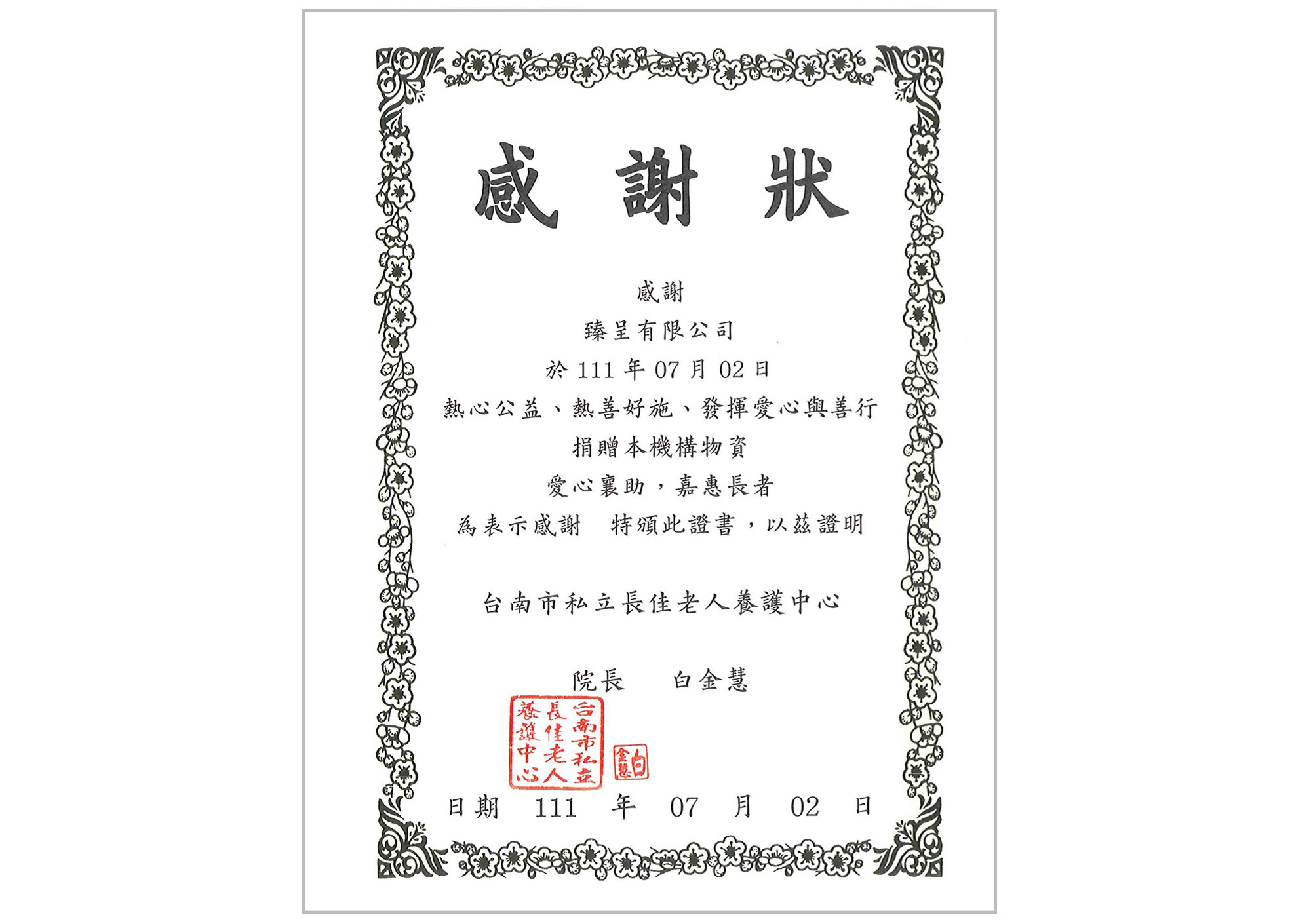 愛心企業贊助者:臻呈有限公司