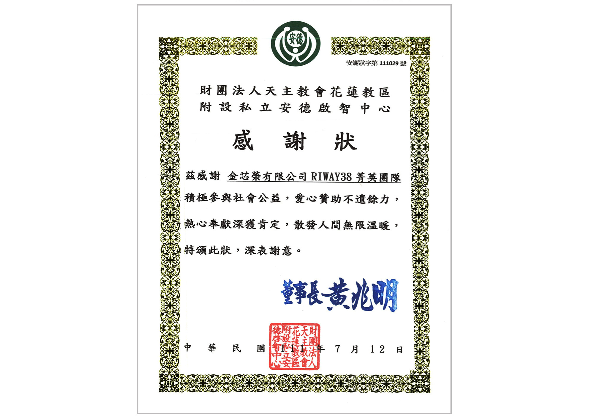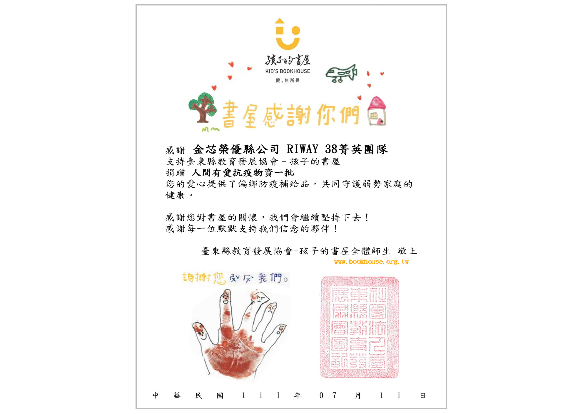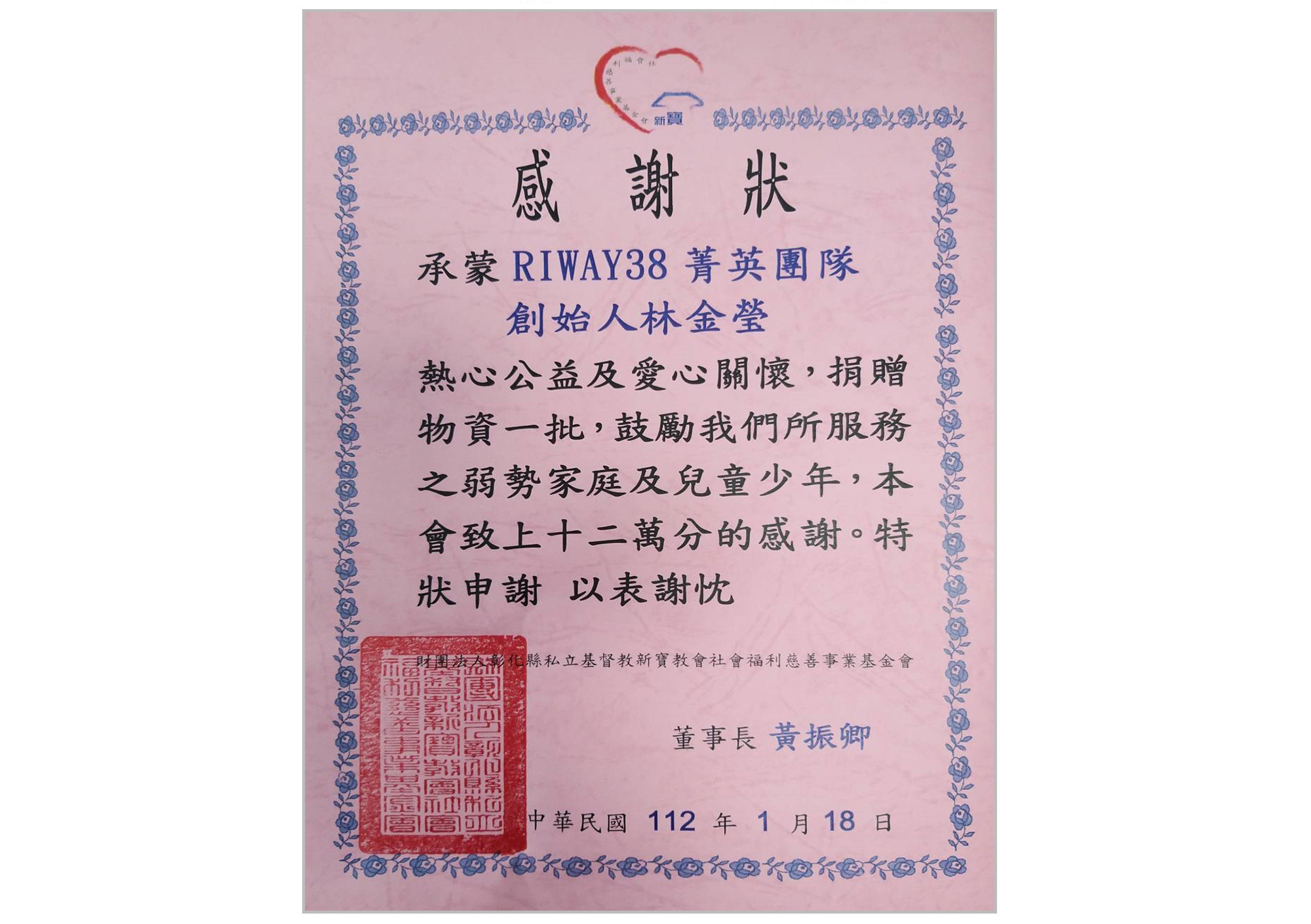 愛心企業贊助者:金芯榮有限公司 RIWAY 38菁英團隊