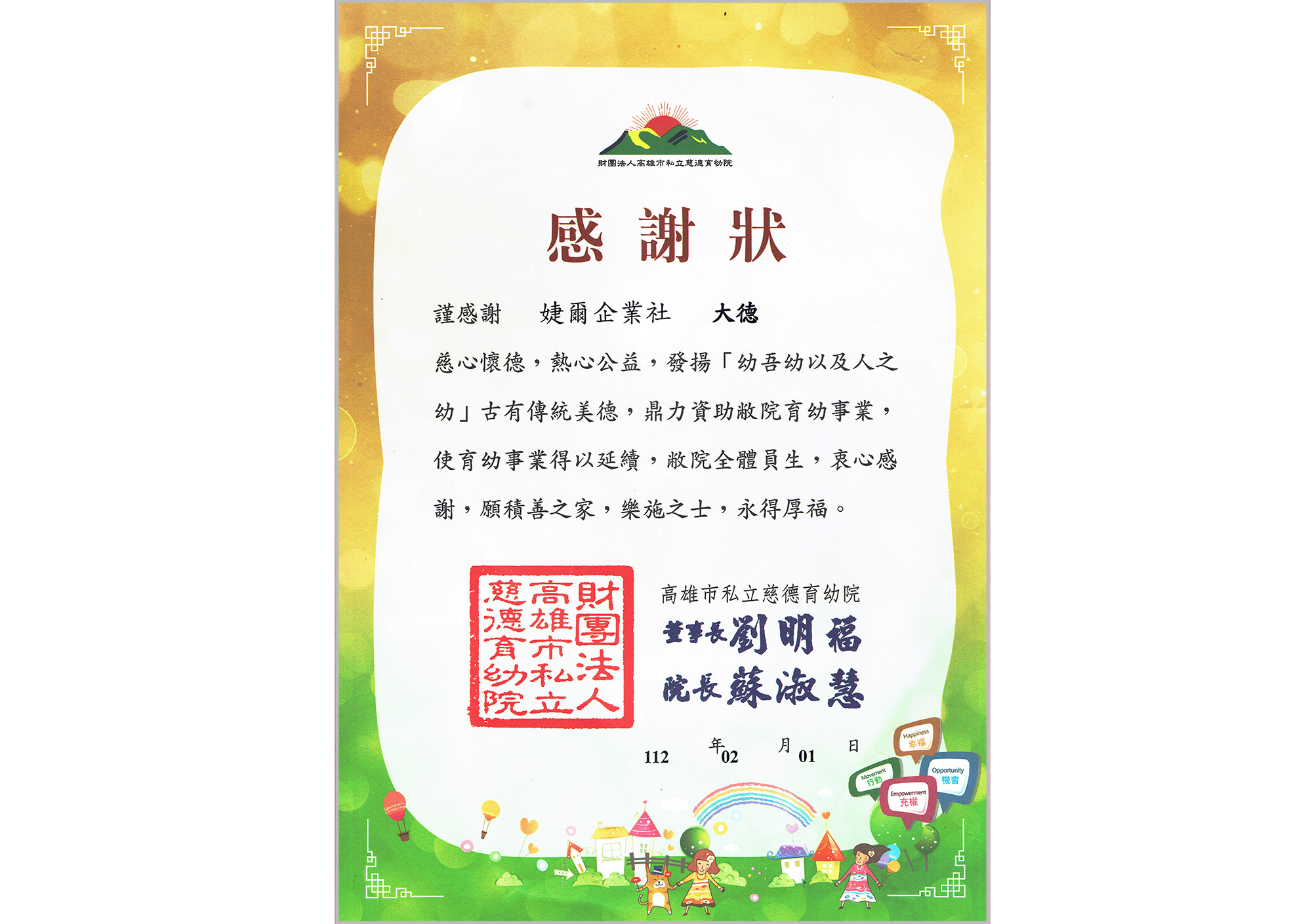 贊助:【人間有愛送物資】高雄慈德育幼院