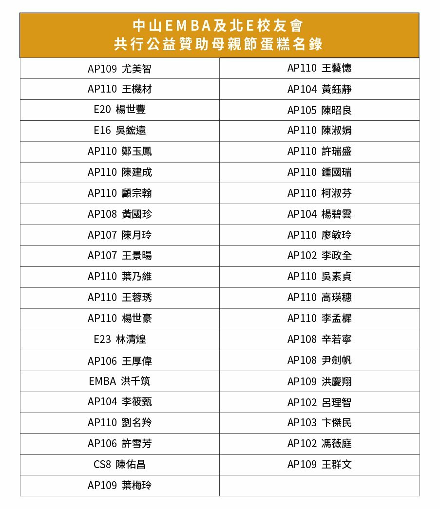 人間有愛中小企業互助協會日前發起送愛偏鄉弱勢童公益活動,理事長林玉卿號召中山大學EMBA與北E校友會學長姐共同響應,成功募集375個愛心蛋糕將分送至11所機構及偏鄉學童、獨居長者等家庭,讓弱勢孩童能和家人在母親節裡,一起團聚享用母親節蛋糕,感受來自社會大眾的溫暖善意。
