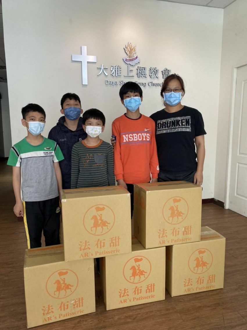 每一位領到蛋糕的上楓教會孩童開心歡喜笑容。