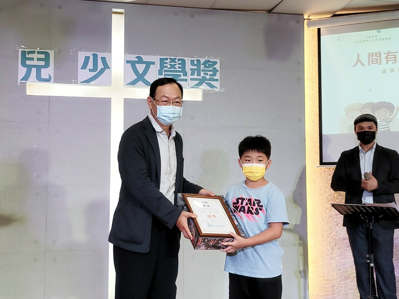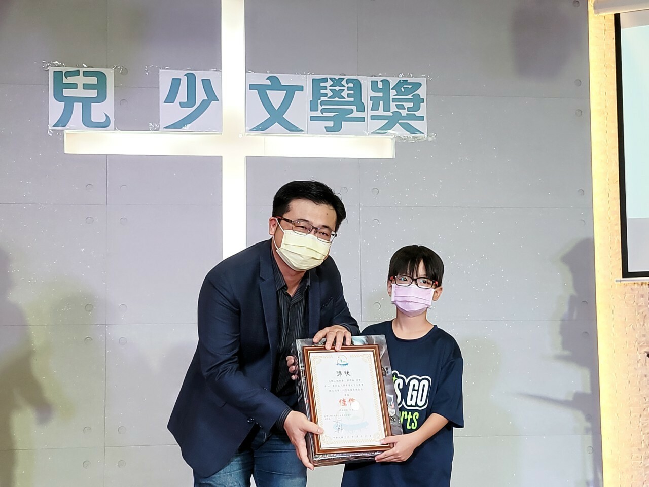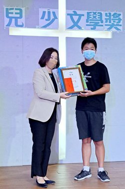 睿峯經營管理顧問執行長鄧學謙與「人間有愛兒少文學獎」佳作得奬者合影。