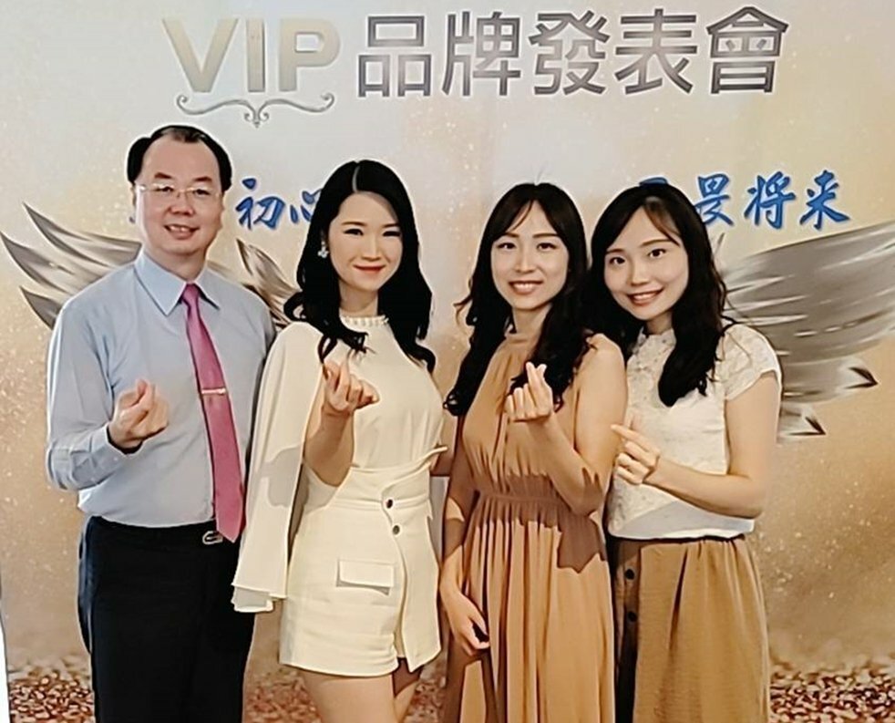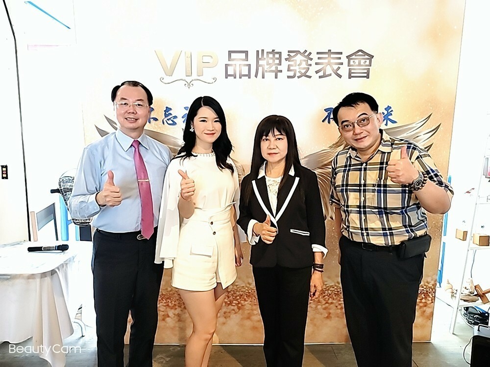 華品文化李中正(左起)、董事長林玉卿、松延酵素二代經理人紀璧而與紀岱螢於發表會後合影。