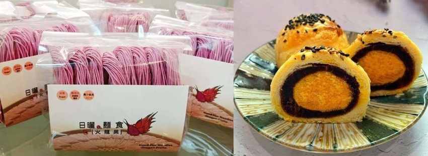 麻吉爸蛋黃贏及陳爸的白頭果園火龍果麵,愛心不落人後,也慷慨地給予支持。