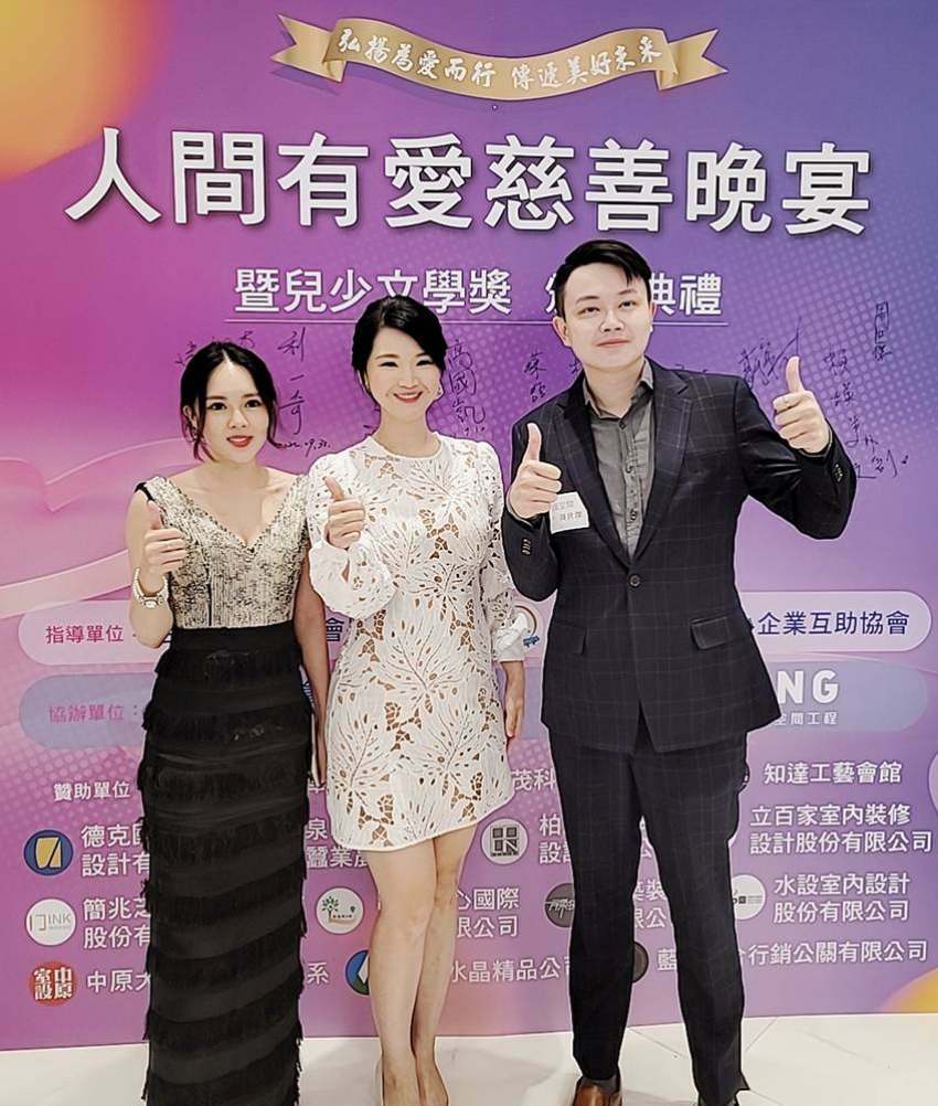 品牌經理邱佩姍(左一起)、林玉卿理事長、藏風空間設計總監周世傑於頒獎後合影。