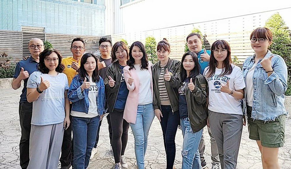中山大學EMBA AP110學長姐齊心共行善舉,蔡林福(左起)、吳淑娟、柯淑芬、陳建成、許瑞盛、鄭玉鳳、林玉卿、王藝憓、廖敏玲、楊世豪、吳素貞與李畹婷合影。
