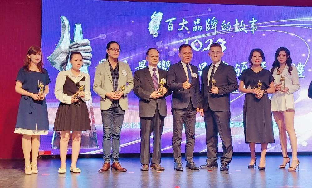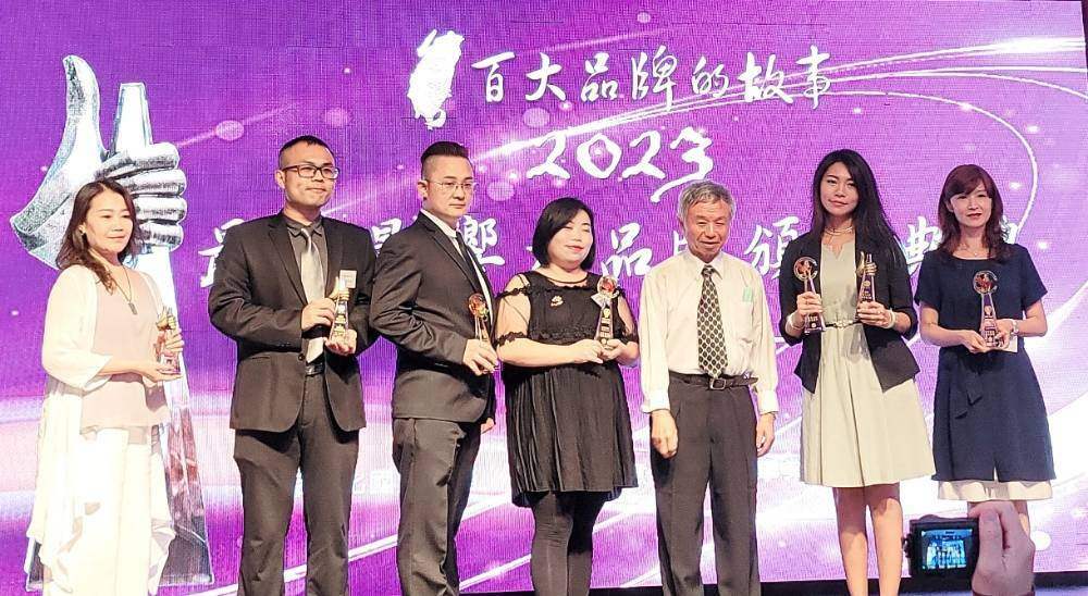 台北市政府王秋冬副秘書長(右四)頒獎給2023年最具影響力品牌得獎企業。