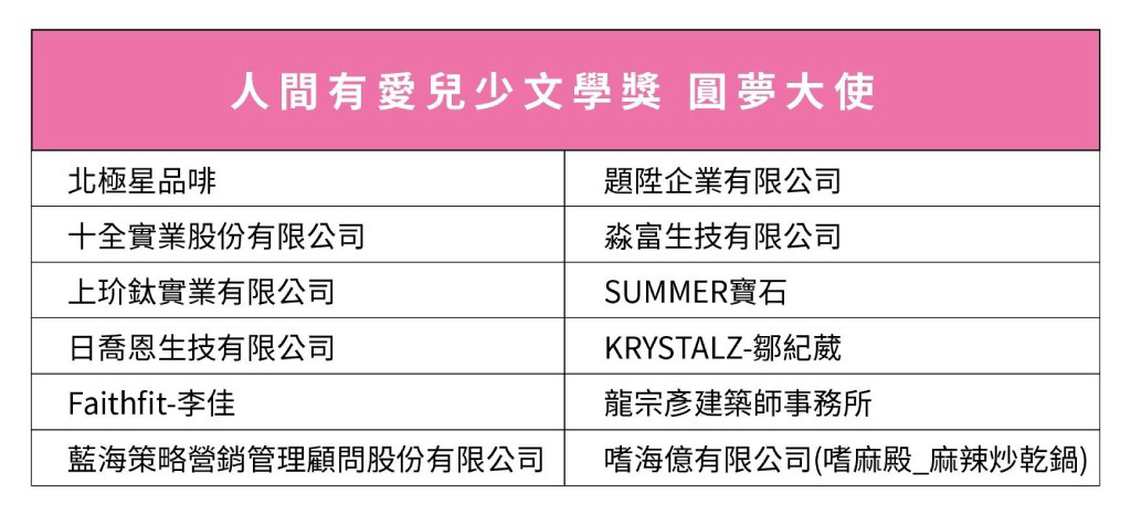 贊助第14屆人間有愛兒少文學獎愛心企業。