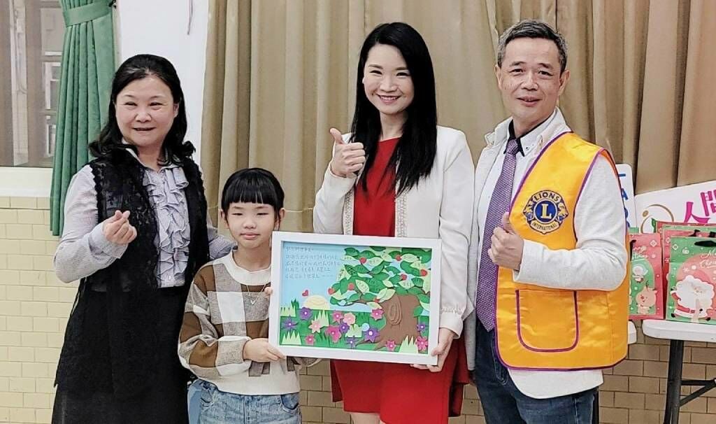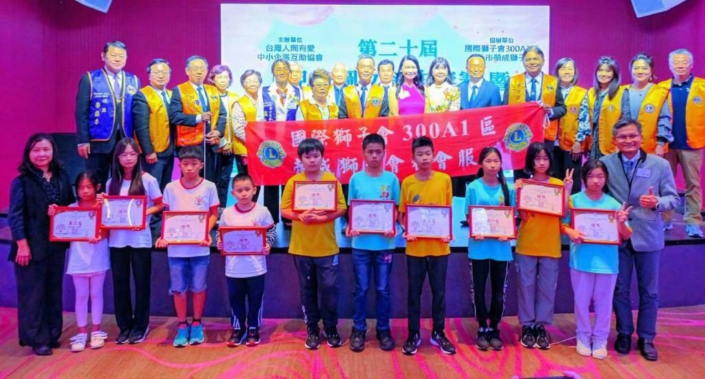 國際獅子會300A1區台北市榮成獅子會與第二十屆兒少文學得獎孩童合影。