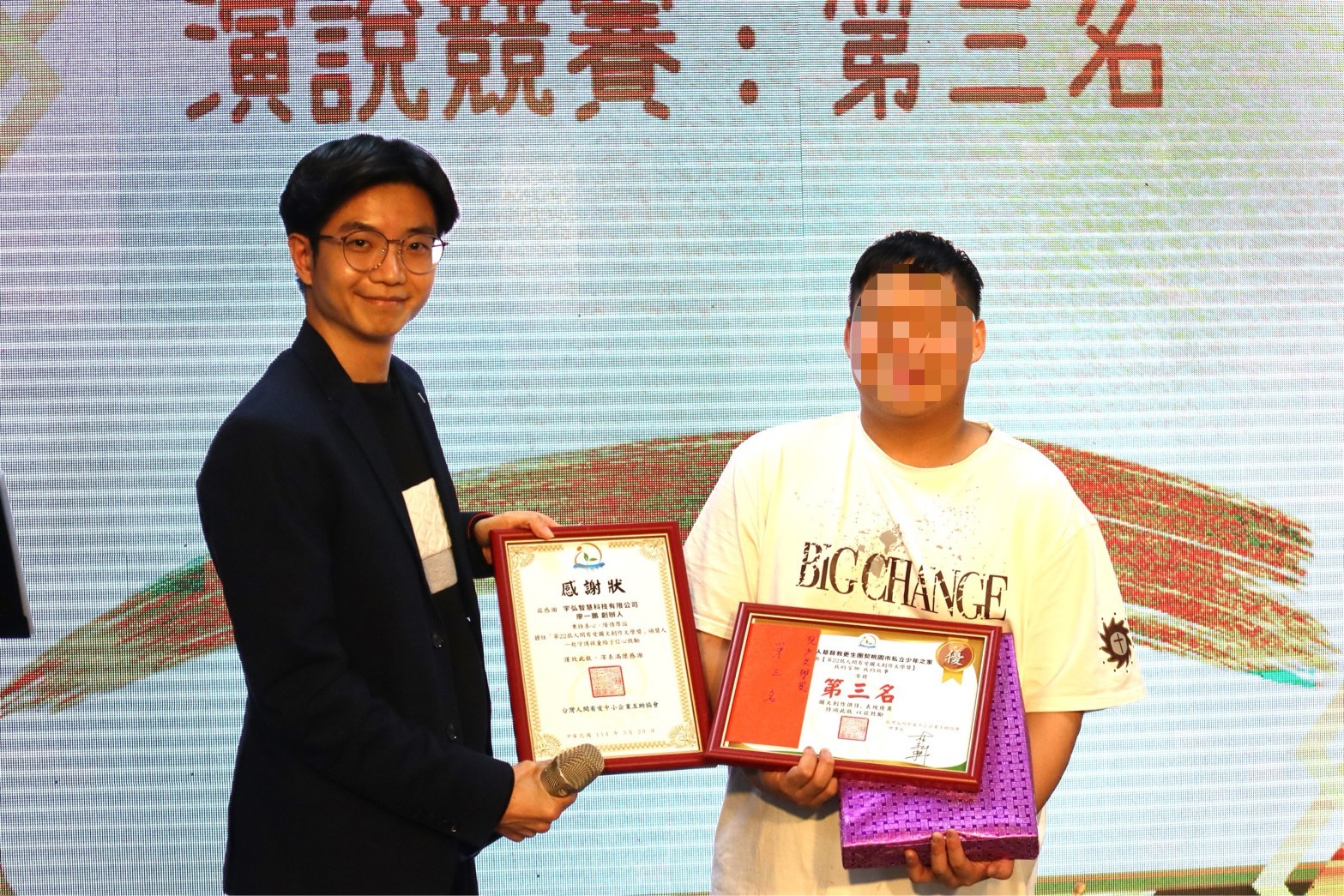 宇弘智慧科技代表(左)頒發第三名得獎孩童。圖/協會提供