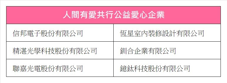 3月29日第22屆「人間有愛兒少文學獎」溫馨舉辦,主辦單位特別邀請多家企業共襄盛舉,包括東翔生技、大訊科技、宇弘智慧科技、新元科技、益康國際食品、慶鴻守義教育基金會、臺灣永光化學工業、世界法律律師、聿新生物科技、復盛應用科技等,共同用行動傳遞關愛,以企業的愛心成就孩子們的未來。