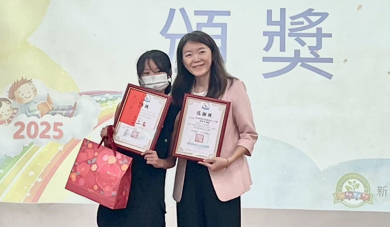 淨空間室內裝修設計工作室總監張美淨頒獎給第二名學童。圖/協會提供