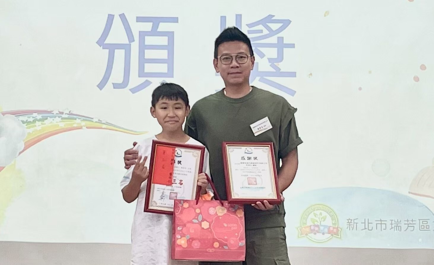 禾暄室內裝修設計有限公司總監杜文和頒獎給第一名學童。圖/協會提供