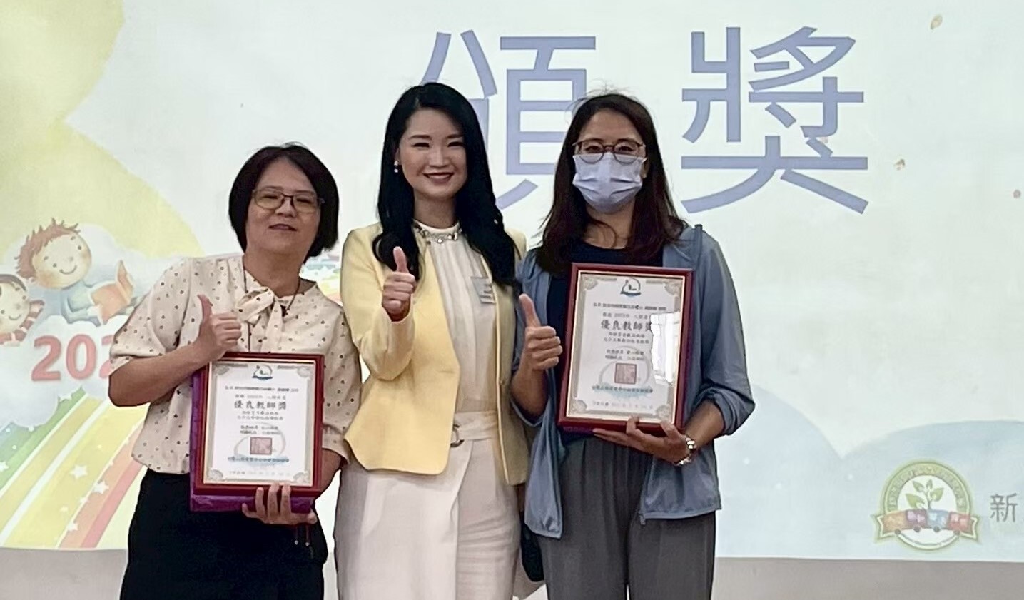 林玉卿理事長(中)頒發優良教師獎。圖/協會提供